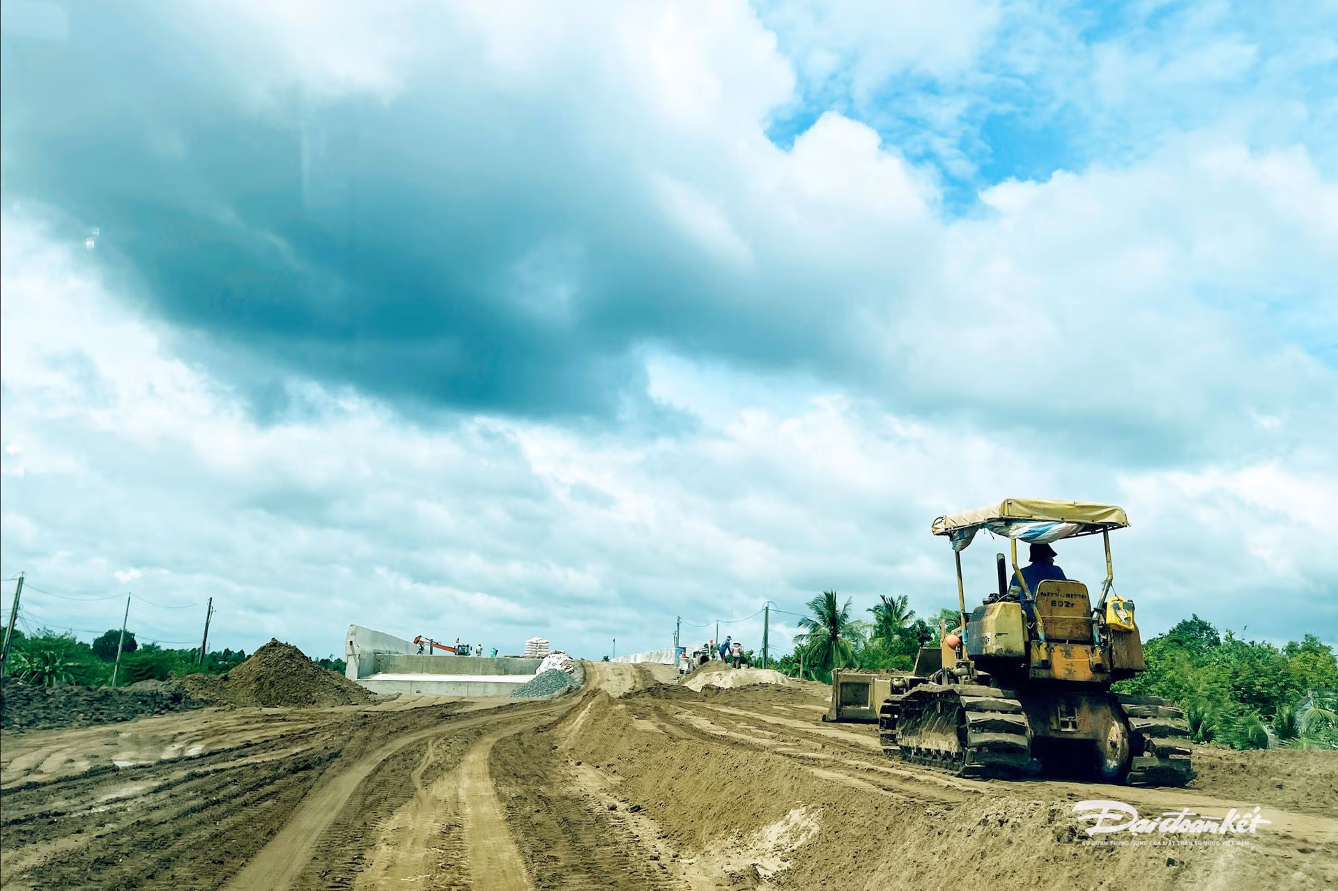 Ghi nhận của PV Báo Đại đoàn kết, hiện khu vực miền Tây vẫn đang trong mùa mưa, nhưng lượng mưa đã giảm nhiều, nhà thầu tranh thủ tập trung máy móc, nhân lực thời tiết thuận lợi sẵn sàng thi công.