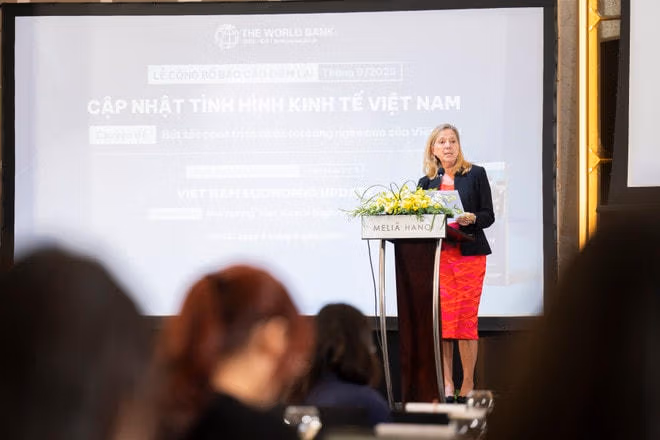 Phát biểu tại sự kiện, bà Mariam Sherman - Giám đốc Quốc gia WB tại Việt Nam nhấn mạnh triển vọng vẫn còn bất định và phụ thuộc vào diễn biến thương mại toàn cầu. Đà tăng trưởng hiện tại không nên xem là hiển nhiên và có thể suy yếu nếu những "cơn gió ngược" từ kinh tế toàn cầu và gián đoạn thương mại trở thành hiện thực.