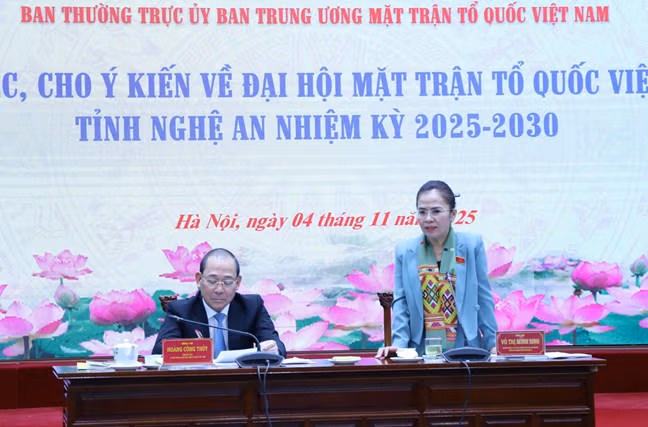 Chiều 4/11, tại Hà Nội, Phó Chủ tịch Ủy ban Trung ương MTTQ Việt Nam Hoàng Công Thủy đã làm việc, cho ý kiến vào nội dung chuẩn bị tổ chức Đại hội đại biểu MTTQ Việt Nam tỉnh Nghệ An lần thứ XVI, nhiệm kỳ 2025- 2030.