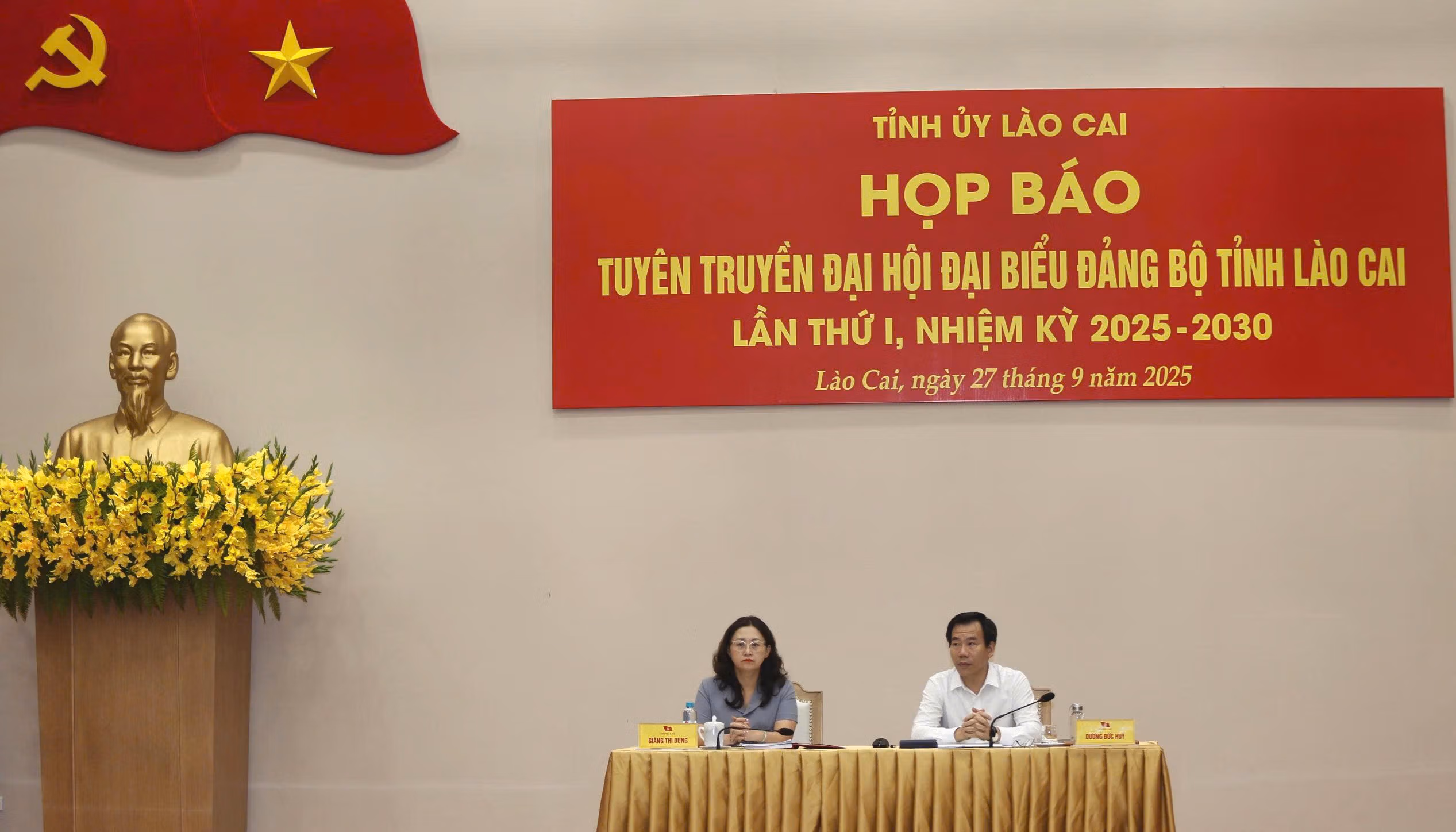 Chiều 27/9, Tỉnh ủy Lào Cai tổ chức họp báo tuyên truyền Đại hội đại biểu Đảng bộ tỉnh Lào Cai lần thứ I, nhiệm kỳ 2025 - 2030. Bà Giàng Thị Dung, Phó Bí thư Tỉnh ủy, Chủ tịch Ủy ban MTTQ Việt Nam tỉnh Lào Cai chủ trì cuộc họp.