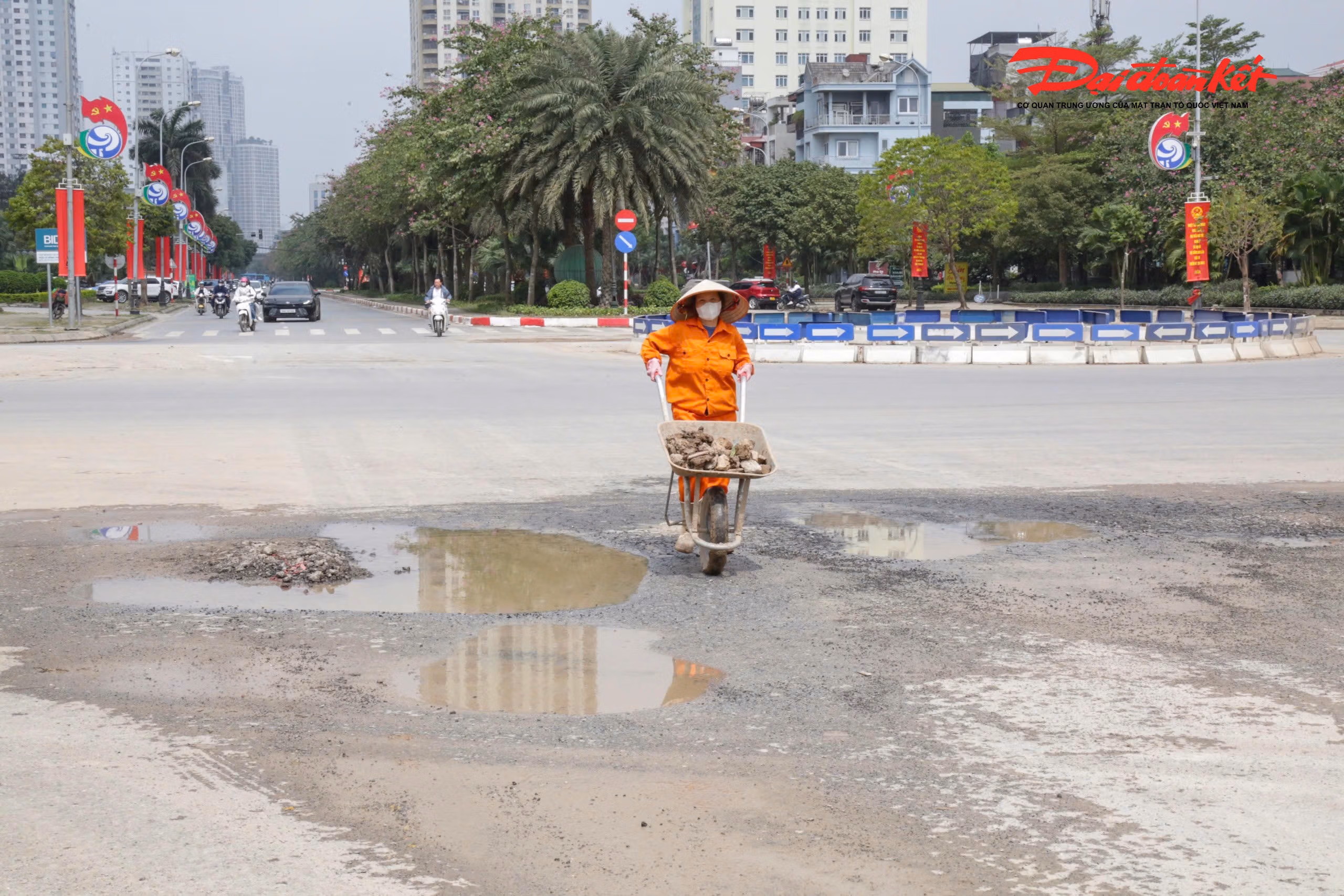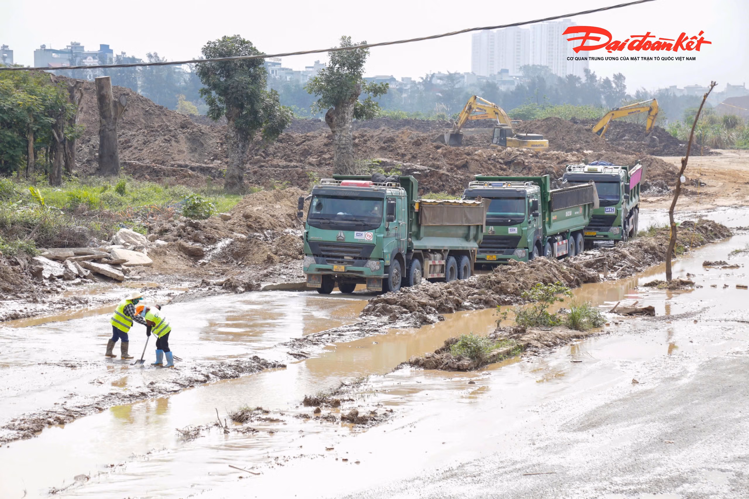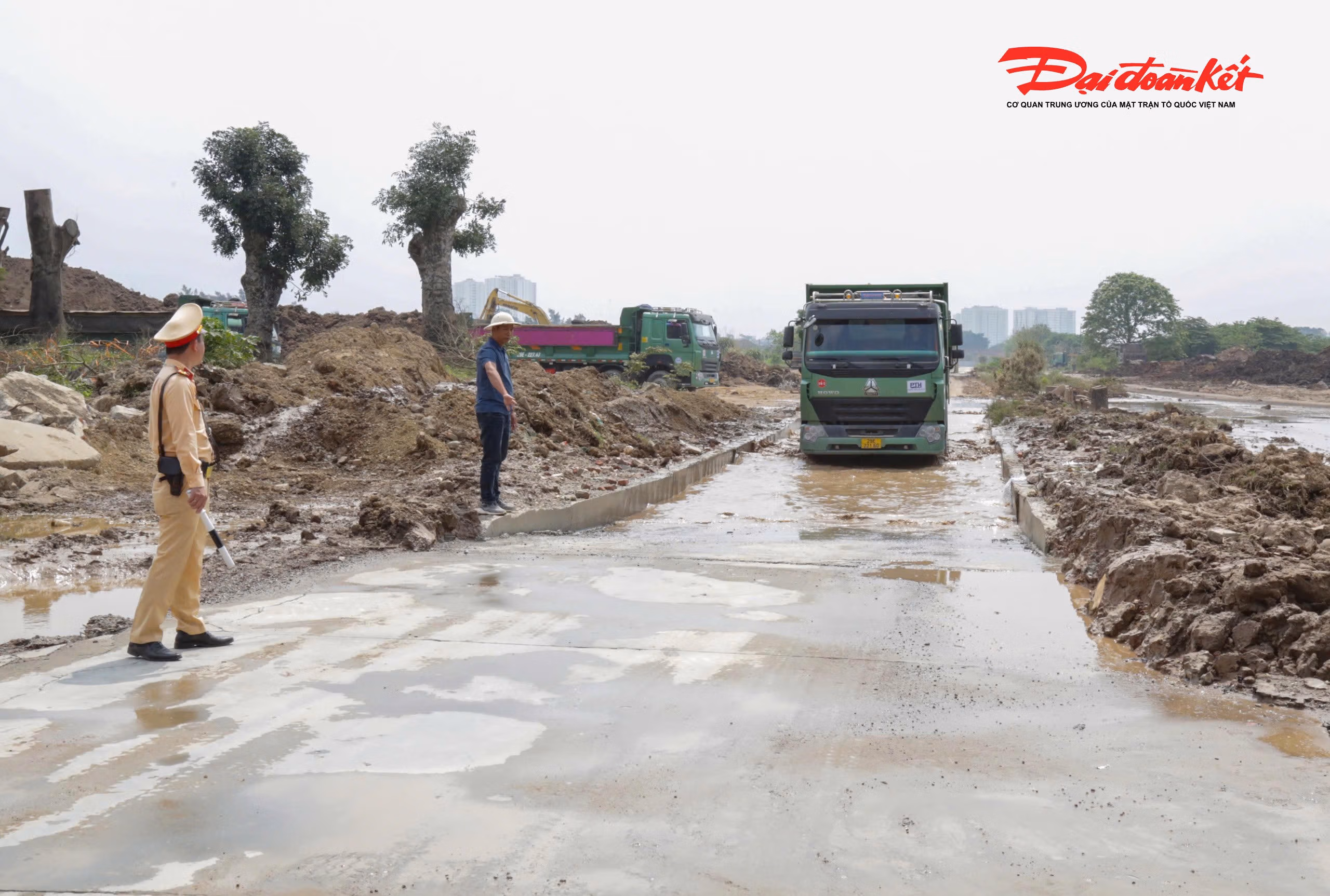 Nhiều xe tải chở đất từ công trường làm rơi vãi bùn đất ra đường phố Hà Nội, khiến mặt đường trơn trượt, ảnh hưởng an toàn giao thông. Trong sáng 16/3, lực lượng CSGT đã kiểm tra, xử lý các tài xế vi phạm và yêu cầu công trường khắc phục tình trạng này.