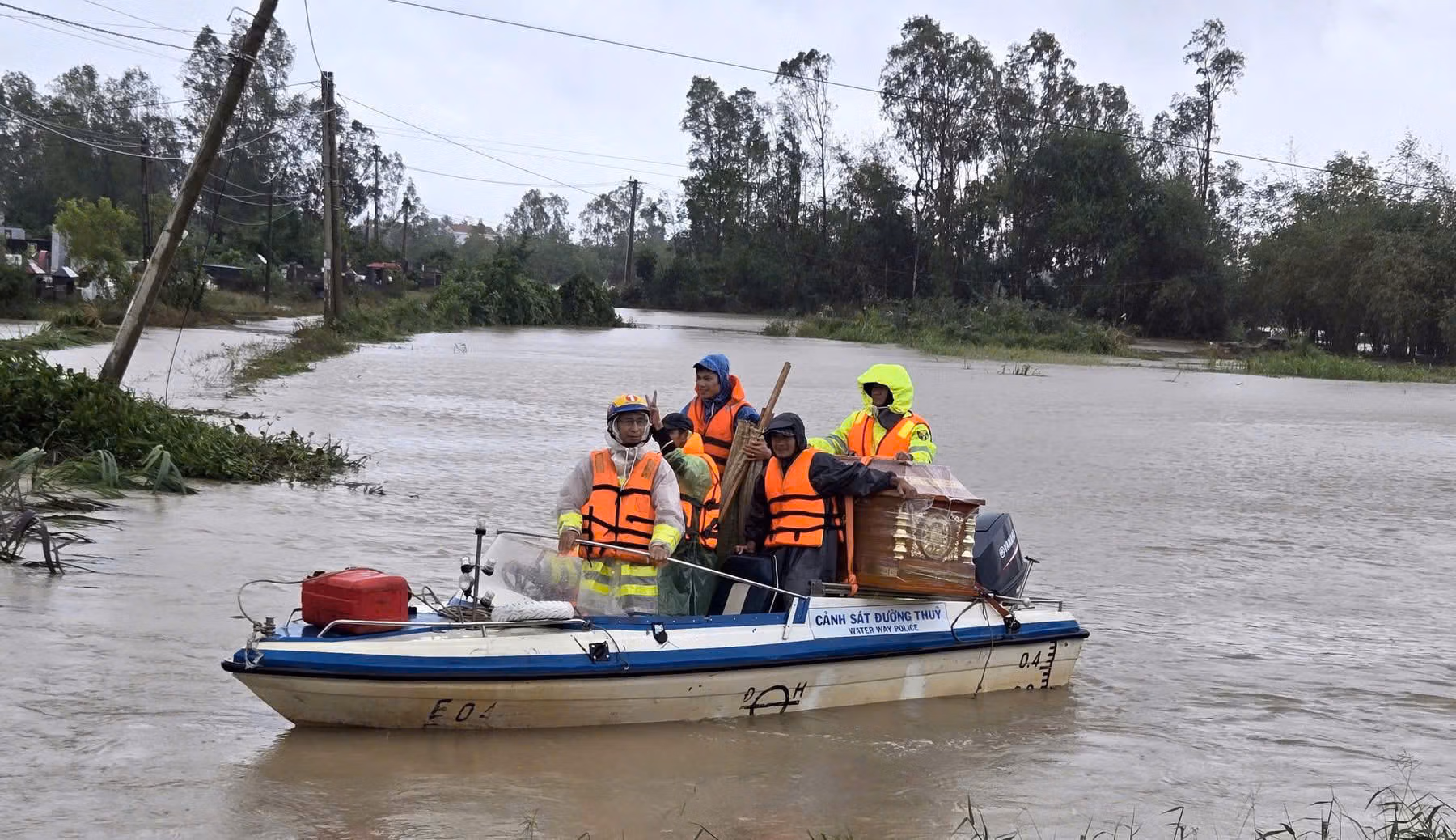 Giữa dòng nước lũ đang dâng cao, lực lượng Cảnh sát giao thông đường thủy tỉnh Đắk Lắk đã dùng ca nô chuyên dụng vượt qua nhiều đoạn nước xiết, hỗ trợ một gia đình đưa quan tài cháu bé 12 tuổi về nhà để kịp thời làm hậu sự.