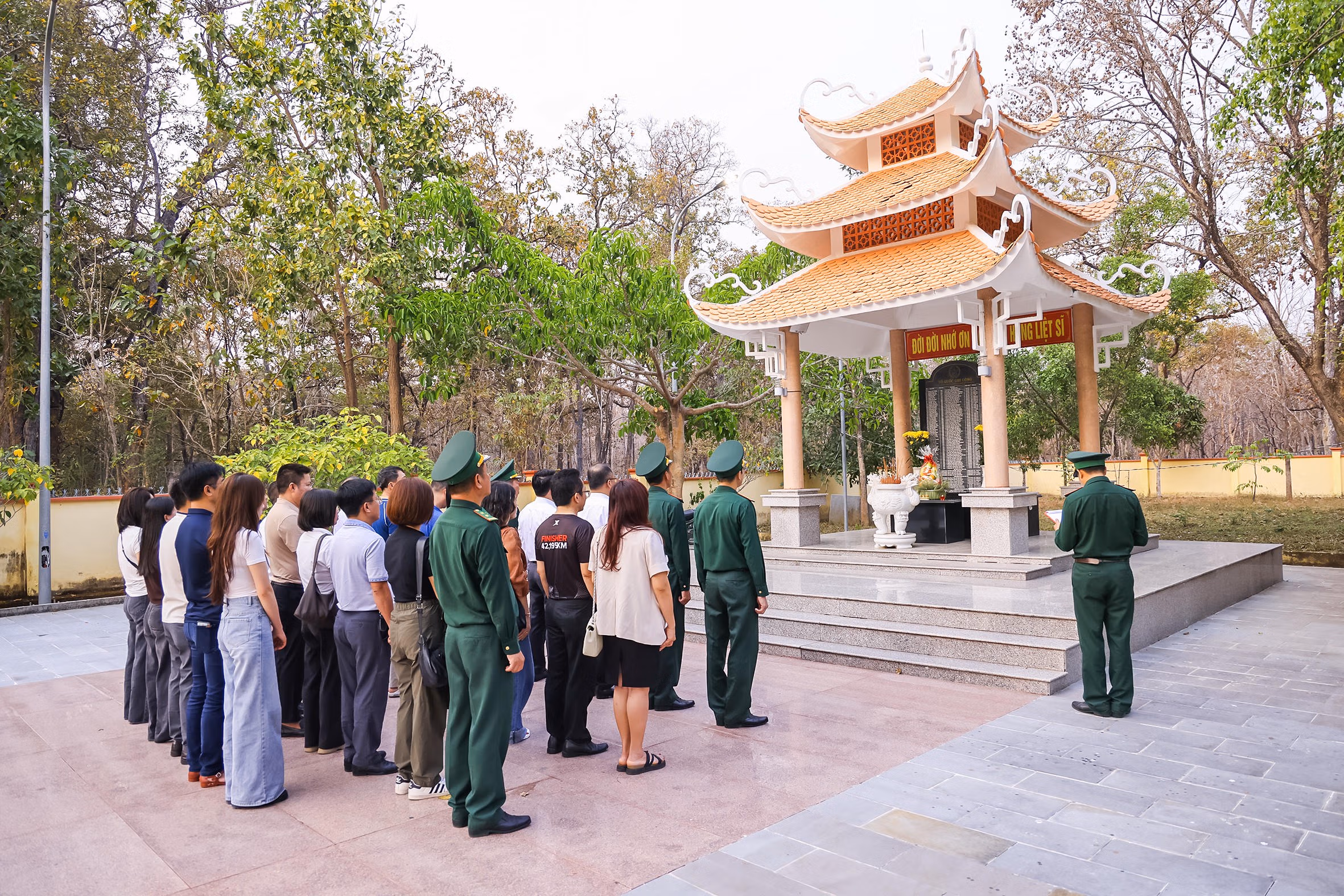 Tại Nhà bia ghi danh các Anh hùng liệt sĩ của Đồn Biên phòng Sêrêpốk, đoàn công tác đã thành kính dâng hương tưởng niệm, bày tỏ lòng biết ơn đối với 71 liệt sỹ đã anh dũng hy sinh trong sự nghiệp bảo vệ chủ quyền, an ninh biên giới quốc gia.