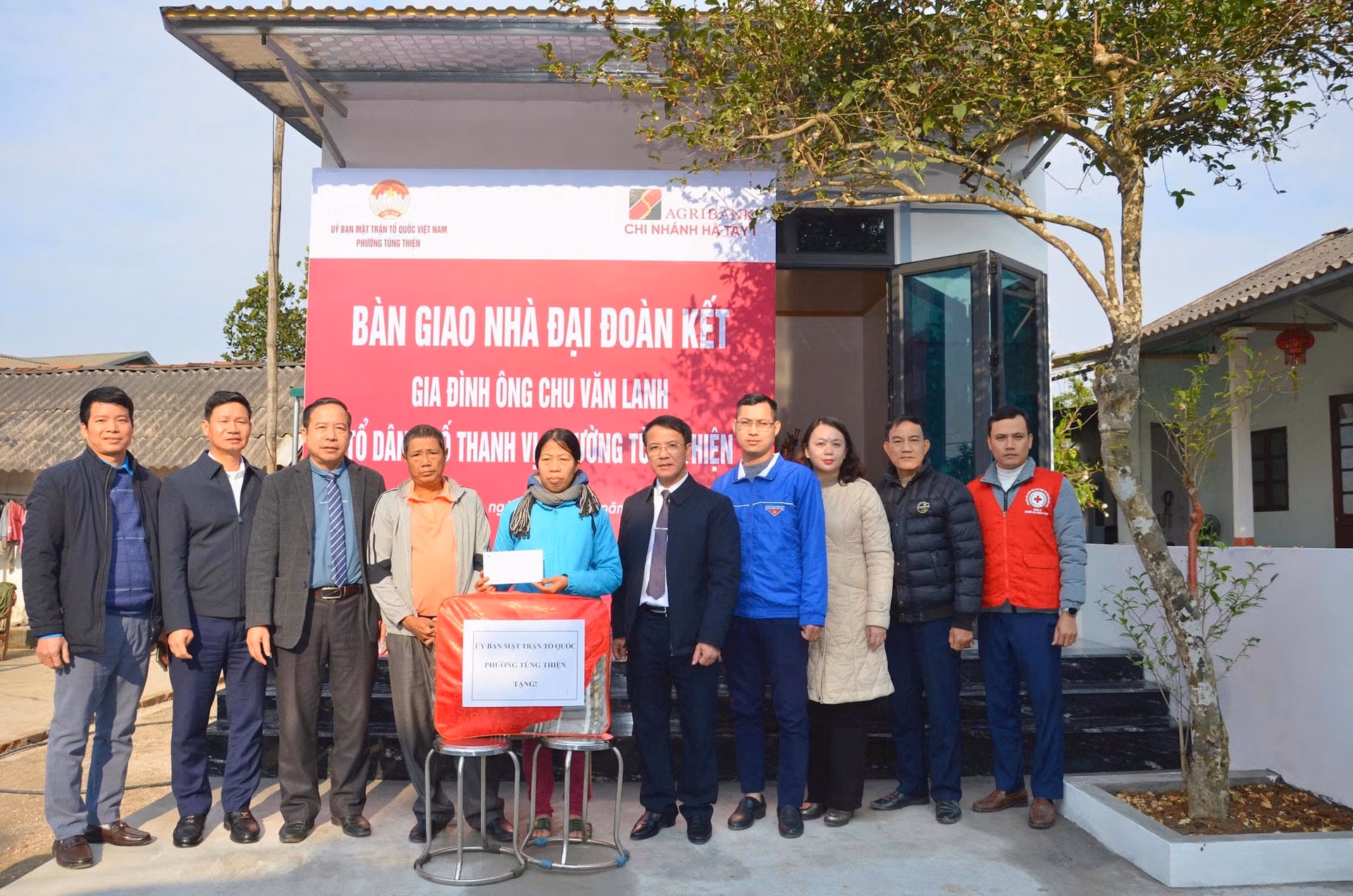 Cũng vào những ngày này, tại phường Tùng Thiện, Ủy ban MTTQ Việt Nam phường Tùng Thiện phối hợp với Ngân hàng Nông nghiệp và Phát triển nông thôn Việt Nam - Chi nhánh Hà Tây I tổ chức Lễ bàn giao nhà đại đoàn kết cho gia đình ông Chu Văn Lanh, tổ dân phố Thanh Vị. Gia đình ông Chu Văn Lanh là hộ cận nghèo, có hoàn cảnh khó khăn. Bản thân ông thường xuyên ốm đau, bệnh tật; hai vợ chồng đang nuôi 3 con nhỏ. Trước đây, gia đình sinh sống trong căn nhà đã xuống cấp nghiêm trọng, không bảo đảm an toàn, nhất là trong mùa mưa bão. Do điều kiện kinh tế hạn hẹp, gia đình chưa có khả năng tự xây dựng nhà ở kiên cố.