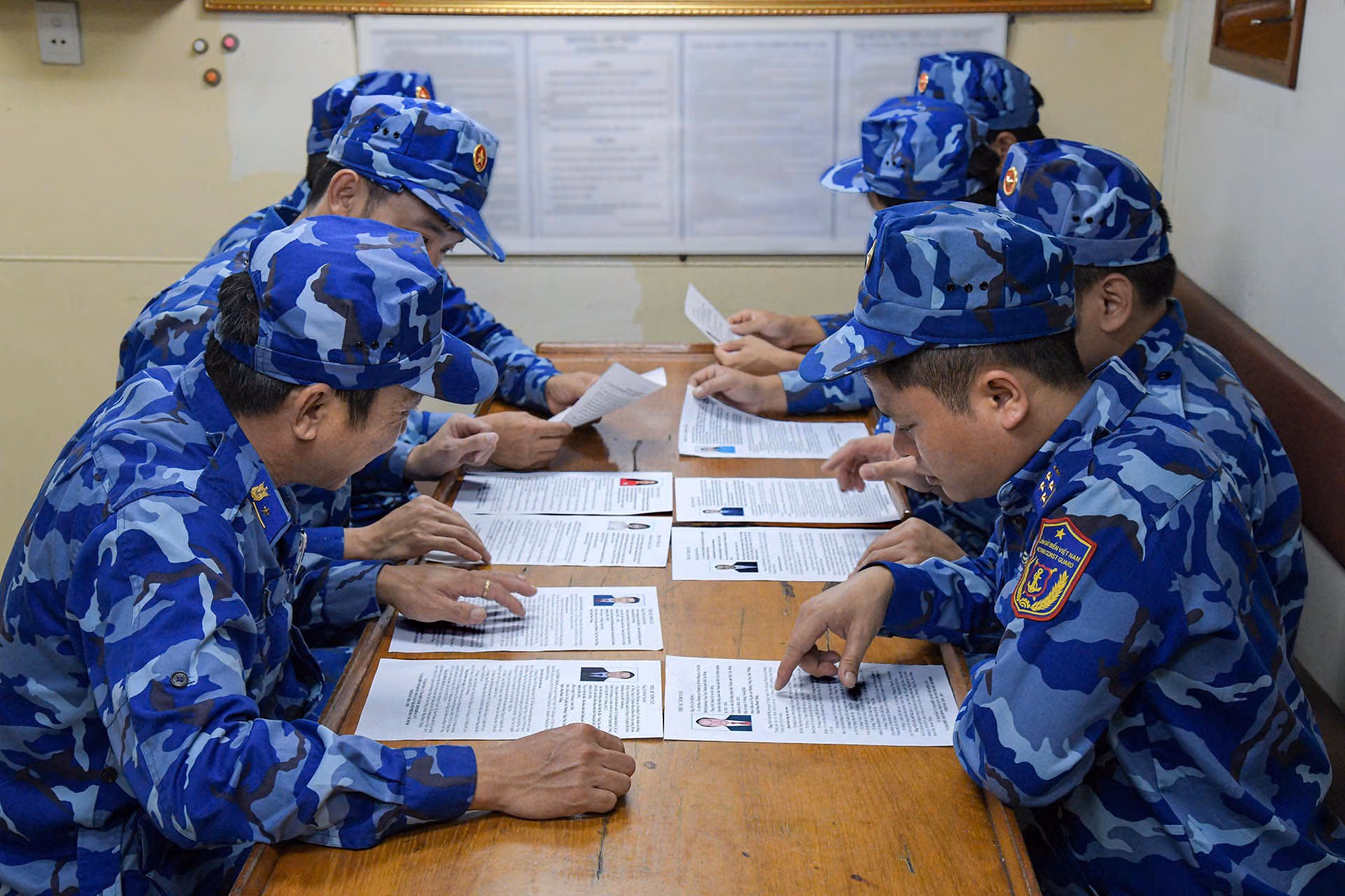 Xúc động hình ảnh cán bộ, chiến sĩ cảnh sát biển bỏ phiếu bầu cử trên biển