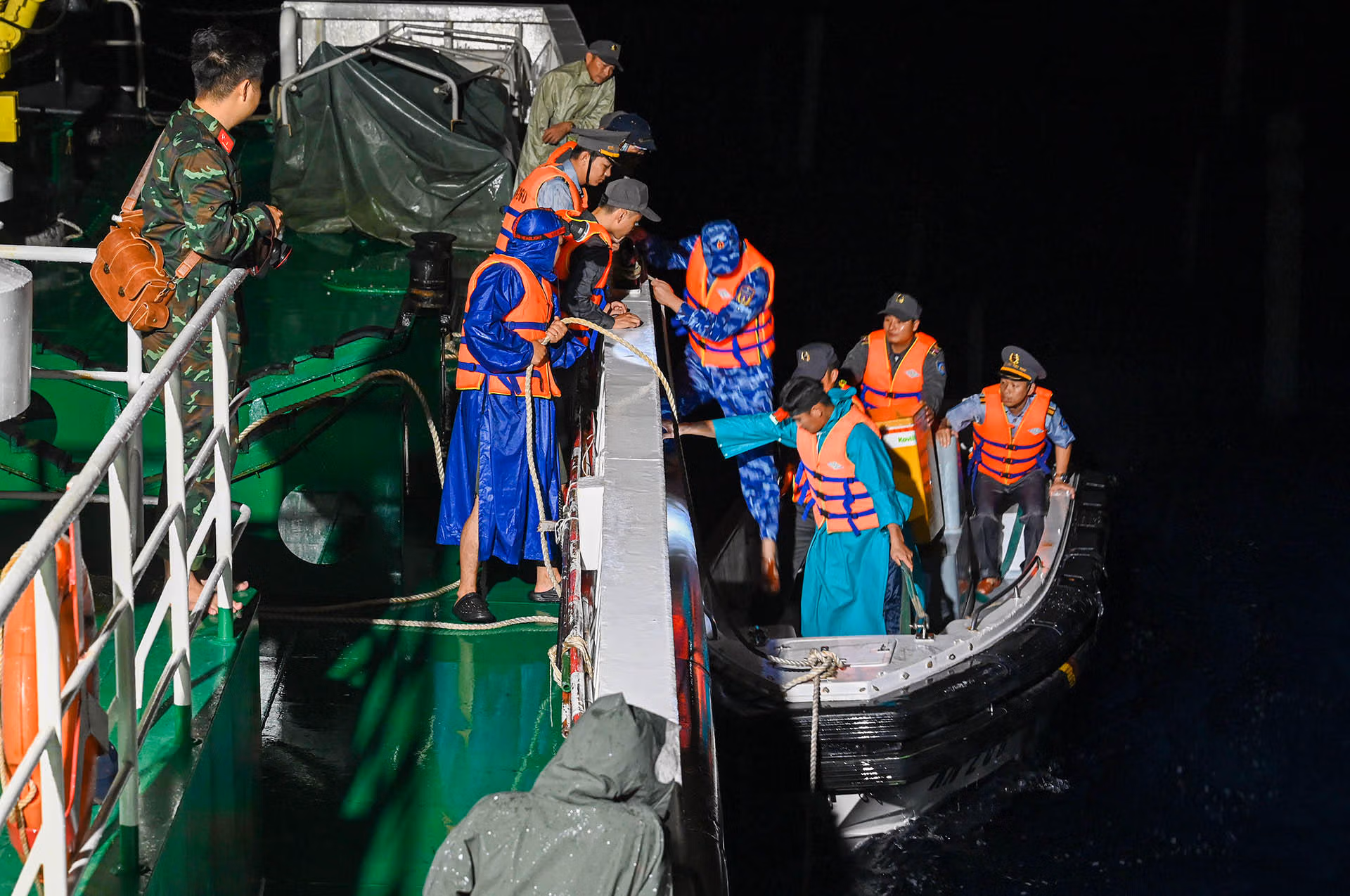 Trong điều kiện thời tiết phức tạp, mưa giông kèm gió lớn gây khó khăn cho công tác tiếp cận tàu vào tối 26/2, các cán bộ, nhân viên Tàu KN 260 cùng các thành viên Tổ bầu cử trên biển vẫn quyết tâm hạ xuồng, cơ động sang Tàu CSB 6008, bảo đảm tổ chức bầu cử đúng kế hoạch, an toàn, nghiêm túc.