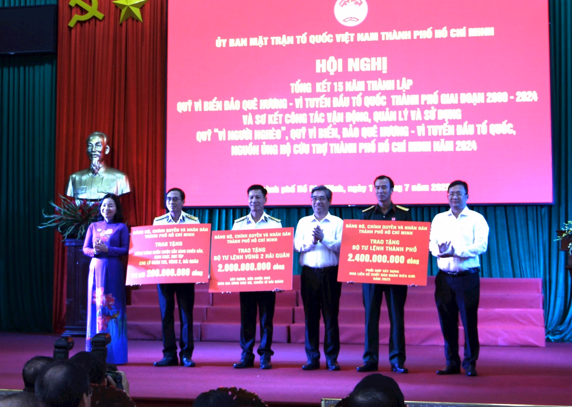 Trong hai ngày 11 - 12/7/2025, tại Lữ đoàn 125 – Vùng 2 Hải quân, Ủy ban Mặt trận Tổ quốc Việt Nam TP Hồ Chí Minh tổ chức các chương trình: Kỷ niệm 15 năm thành lập Quỹ “Vì biển đảo quê hương – Vì tuyến đầu Tổ quốc” (2009–2024), Sơ kết công tác vận động, quản lý Quỹ “Vì người nghèo” và Quỹ cứu trợ năm 2024, tổ chức Lễ tri ân Ủy viên Ủy ban Mặt trận Tổ quốc Việt Nam các địa phương nhiệm kỳ 2024-2029, đồng thời triển khai tập huấn công tác Mặt trận năm 2025.